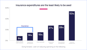 Despite tight finances, consumers are prioritizing spending on insurance over anything else, including car and home ownership. They view insurance as absolutely critical, and very few plan on reducing their spend on it.