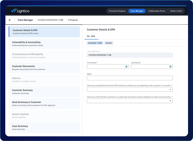 Financial institutions face strict regulatory requirements, and manual tracking can easily lead to errors. Lightico Cases embeds compliance into every workflow by automatically recording actions, approvals, and communications. Every document and interaction is stored securely with a full digital audit trail, helping enterprises meet regulatory obligations while maintaining a smooth customer experience.