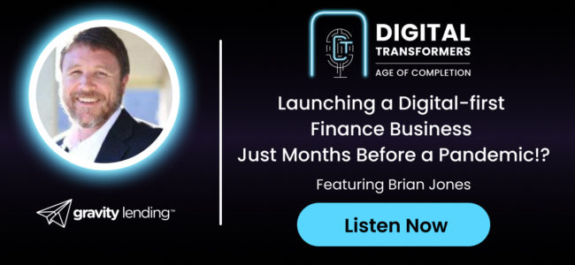 On this episode of Digital Transformers, we’ll speak with Brian Jones, CEO of Gravity Lending about how he launched a digital-first auto lending company only months before the pandemic hit – and how he survived, thrived and is looking to keeping his edge moving forward. […]